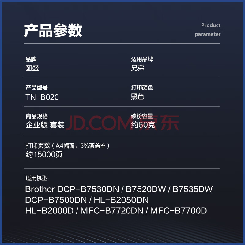 商品相册:图盛TN-B020粉盒适用兄弟DCP-B7520DW硒鼓 7530DN 7535DW 7720DN 7700D 7500D 2050DN 2000D打印机硒鼓墨盒墨粉 第