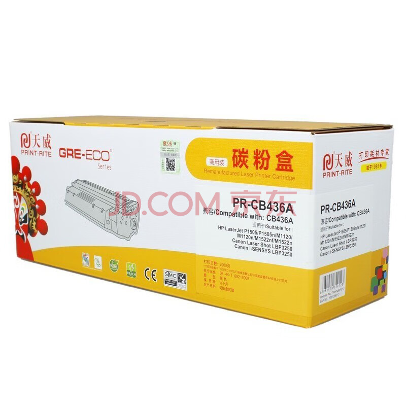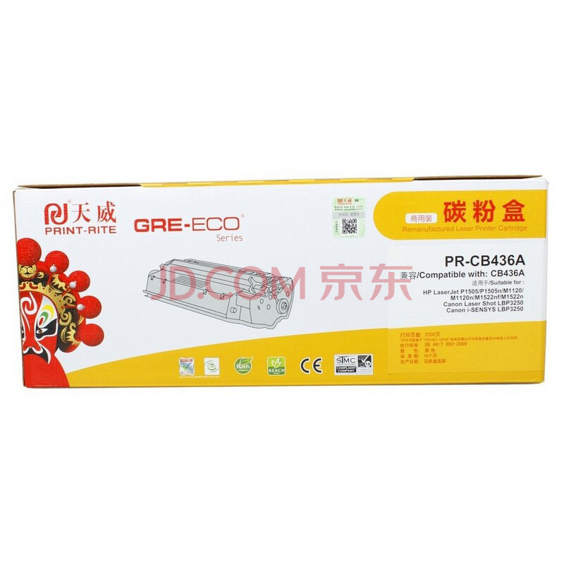 商品相册:天威(PrintRite)PR-CB436A 黑色硒鼓带芯片 适用惠普P1505/P1505n/M1120 商用装 2000页第