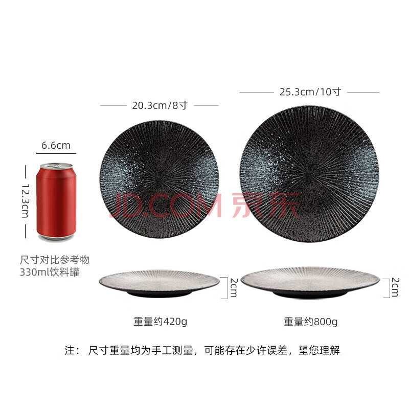 商品相册:onlycook 日式陶瓷西餐盘子 8寸10寸水果盘餐盘餐碟 家用套装菜盘 黑色8寸第