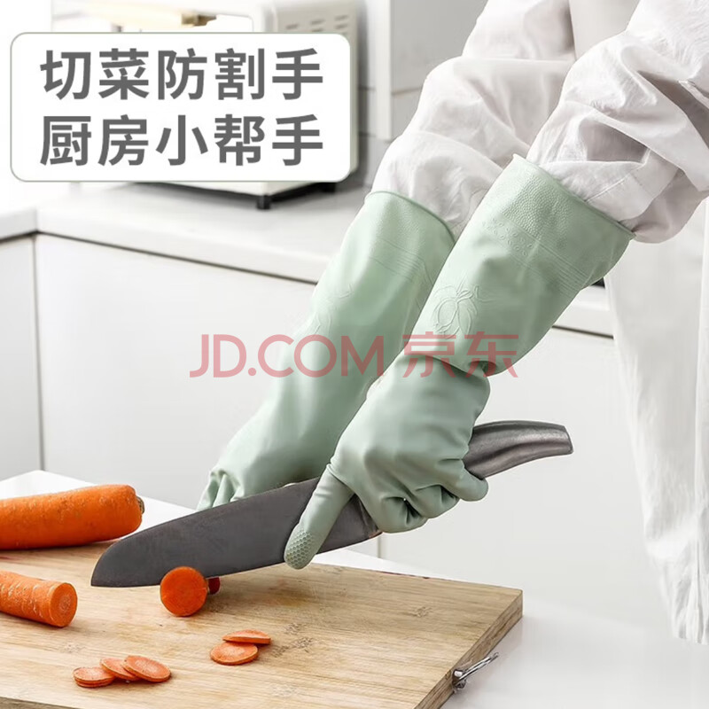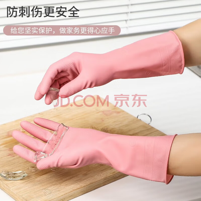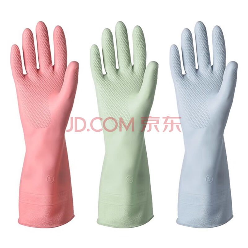 商品相册:雅高PVC手套3双装均码家务手套清洁厨房耐用洗碗手套防水洗衣服手套薄第1张/共5