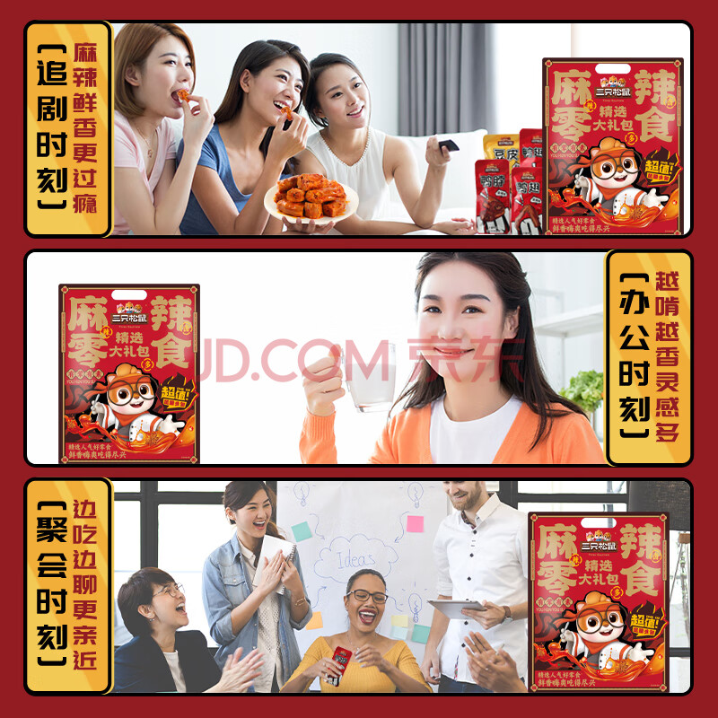 商品相册:三只松鼠麻辣零食大礼包500g/24小包卤味礼盒鸭脖鸭翅肉食礼包团购送礼第