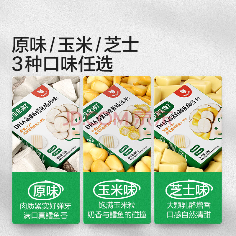 商品相册:宝宝馋了 鳕鱼肠宝宝零食DHA高蛋白鱼肉肠 儿童宝宝零食享婴儿幼儿食谱80g第