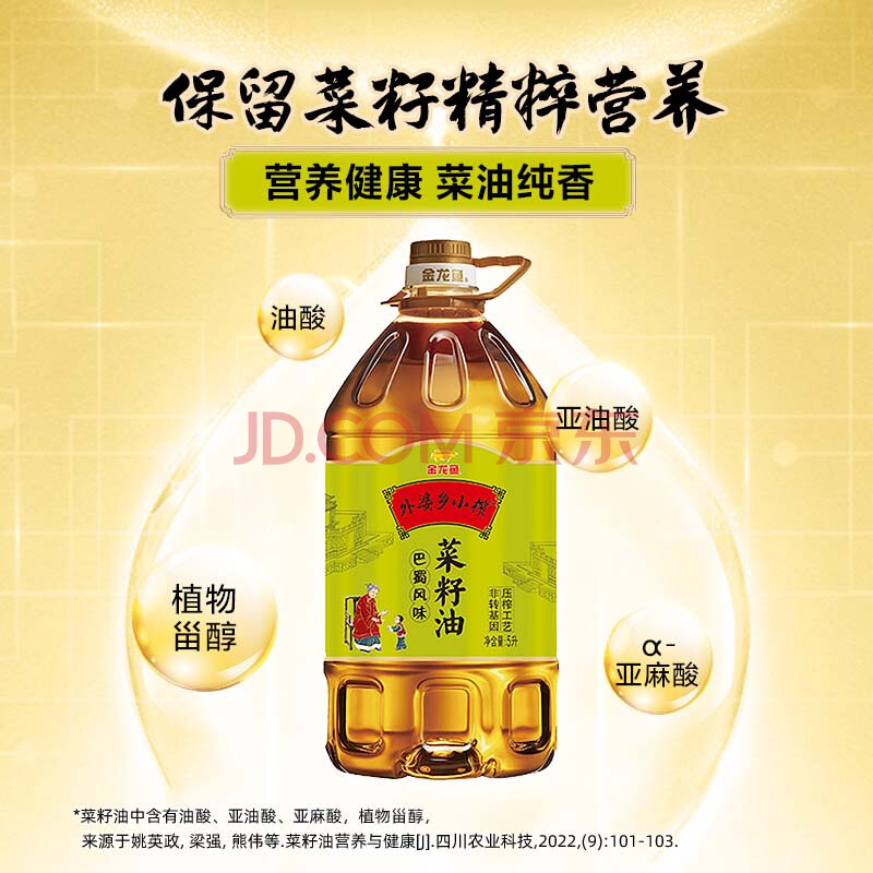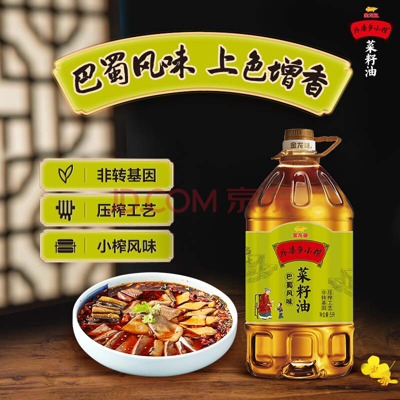 商品相册:金龙鱼 食用油【保真菜籽油】非转压榨 外婆乡小榨巴蜀风味菜籽油5L第