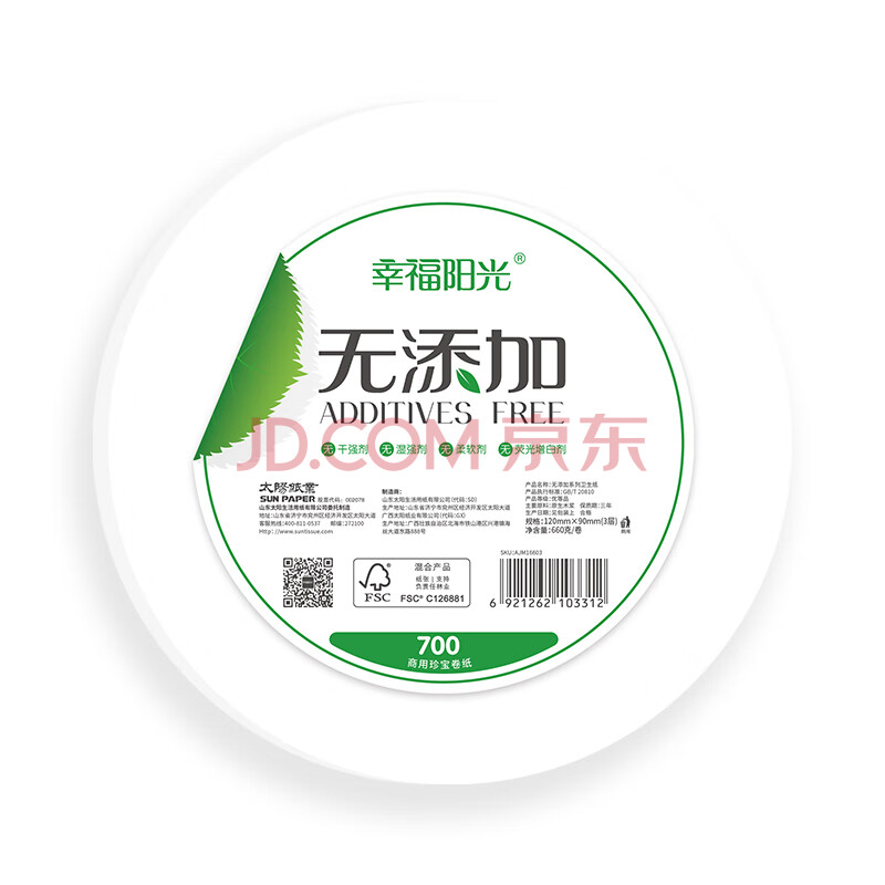 商品相册:幸福阳光大盘纸 有芯大卷卫生纸3层加厚660克*12卷 工厂酒店办公场所厕纸第