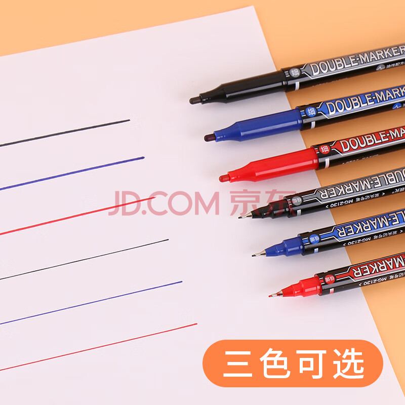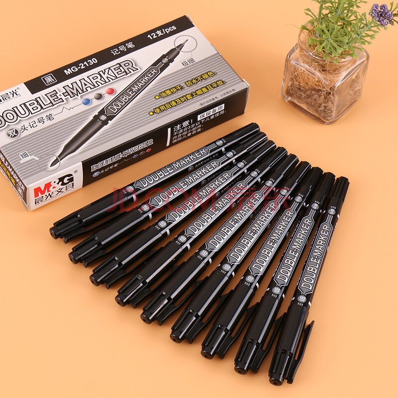 商品相册:晨光(M&G)记号笔MG2130细杆记号笔商务学生勾线笔学习重点标记笔蓝色双头整盒12支装第
