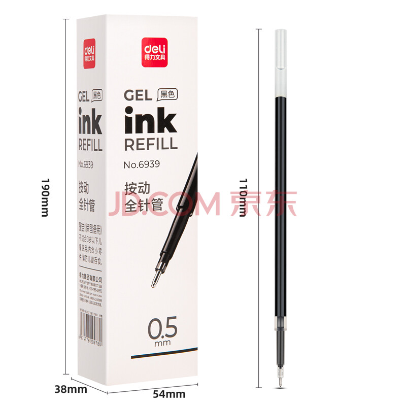 商品相册:得力(deli)中性笔替芯0.5mm按动全针管黑色20支/盒6939第