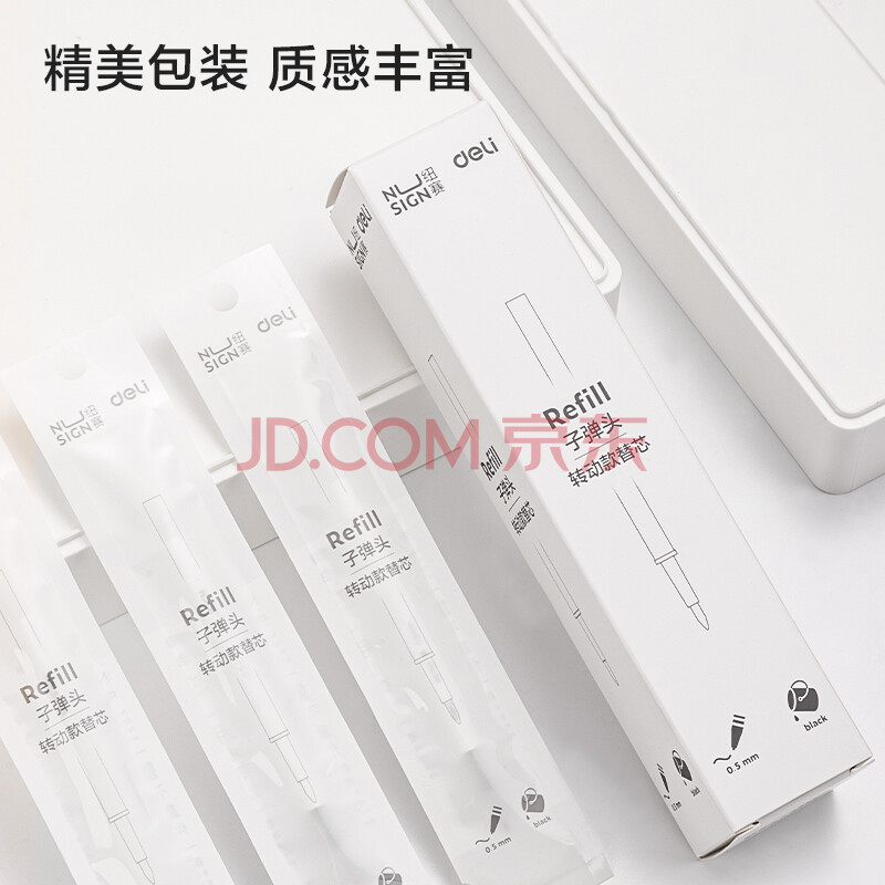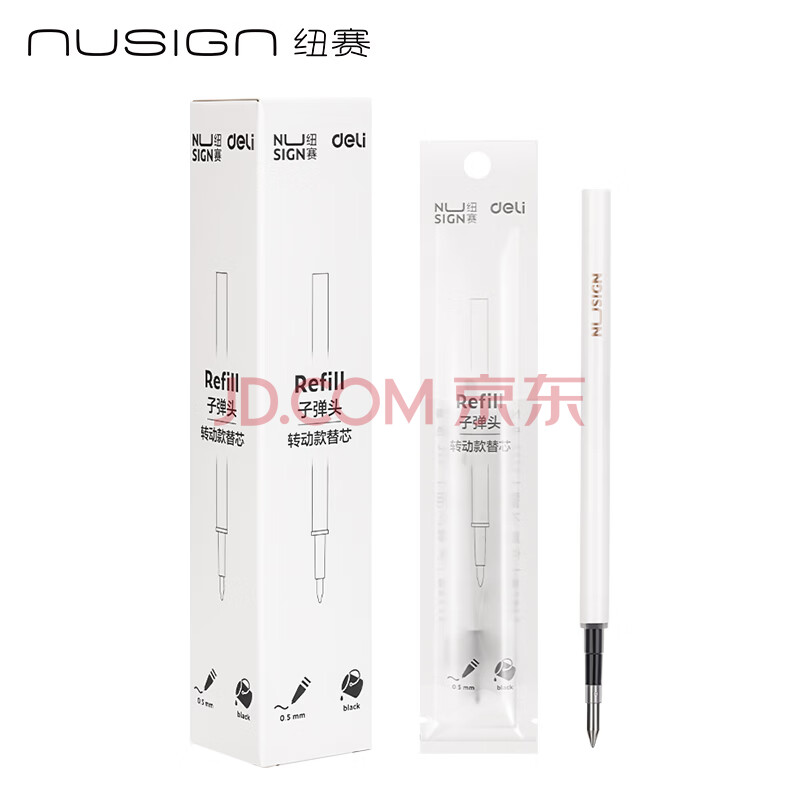 商品相册:纽赛(NUSIGN)旋转款中性笔替芯0.5mm子弹头 NS760(12枚入)【热门商品】得力旗下高端品牌第