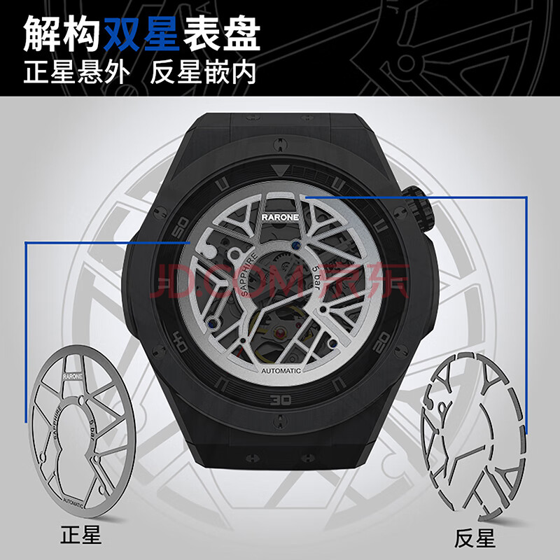 商品相册:雷诺(RARONE)解构派双子星RebelX男士手表机械表全自动腕表 生日礼物送男友第