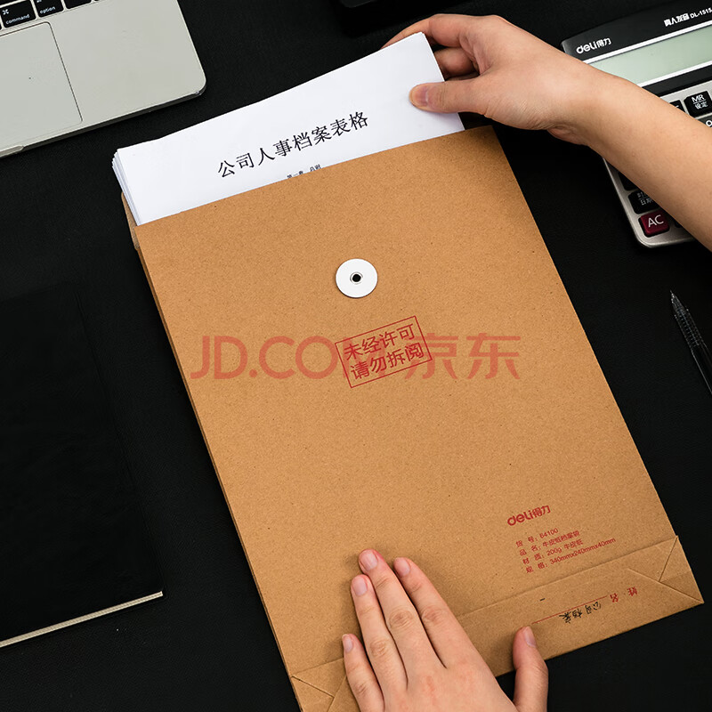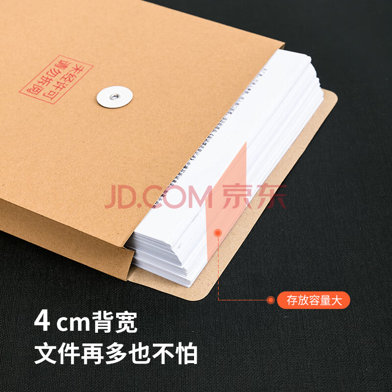 商品相册:得力(deli)10只A4混浆200g加厚牛皮纸档案袋侧宽4cm标书合同文件资料袋票据资料收纳袋 办公文件保护64100第