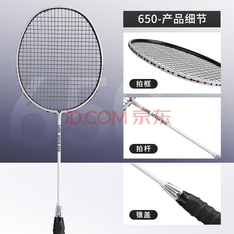 商品相册:尤迪曼清新白对拍羽毛球拍超轻6U训练2支双拍650+690(羽毛球套装)第