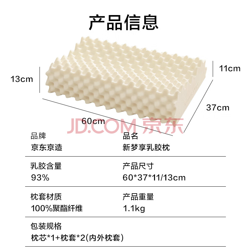 商品相册:京东京造新梦享乳胶枕 93%天然乳胶 泰国进口成人护颈颈椎枕头 颗粒按摩枕第