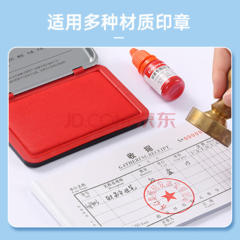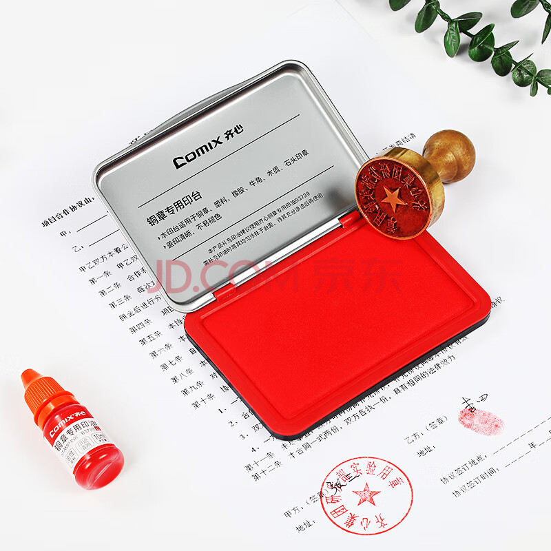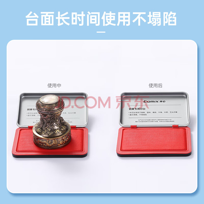 商品相册:齐心(COMIX)油性印台金属方形内盘面105*66mm 高清财务会计专用铜章印台快干印泥 办公用品 红B3737第