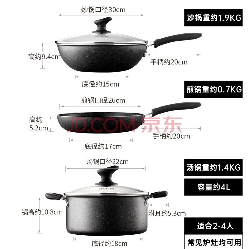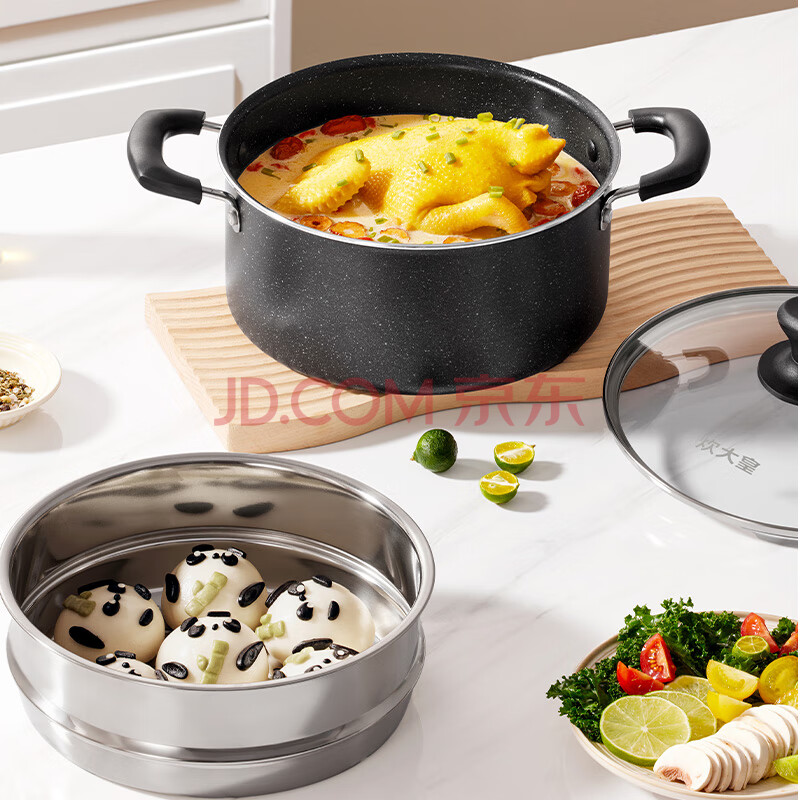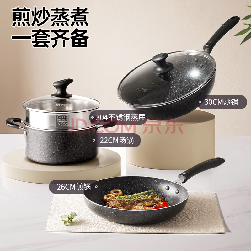 商品相册:炊大皇锅具套装不粘锅星空麦饭石色炒锅煎锅汤蒸锅电磁炉通用B50052第1张/共8
