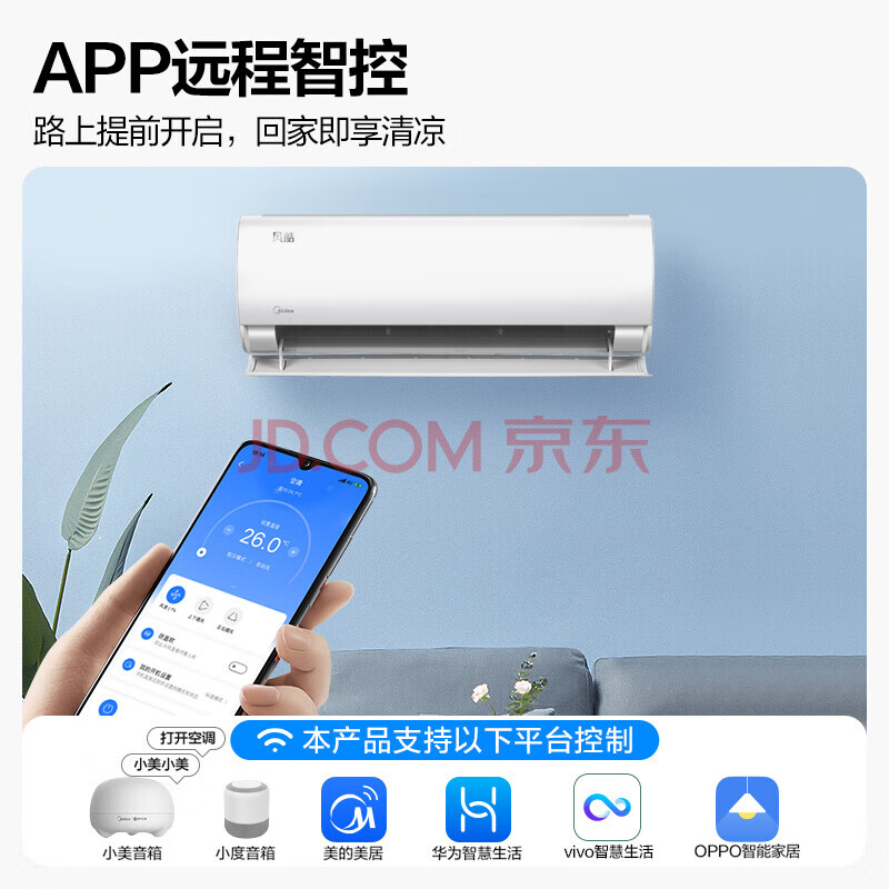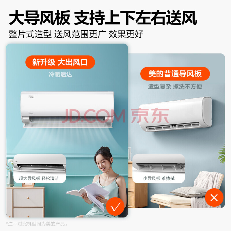 商品相册:美的(Midea) KFR-26GW/N8XHC1 大1匹 空调风酷新一级变频冷暖壁挂式空调挂机大风口 企业购(一价全包10米) LT第