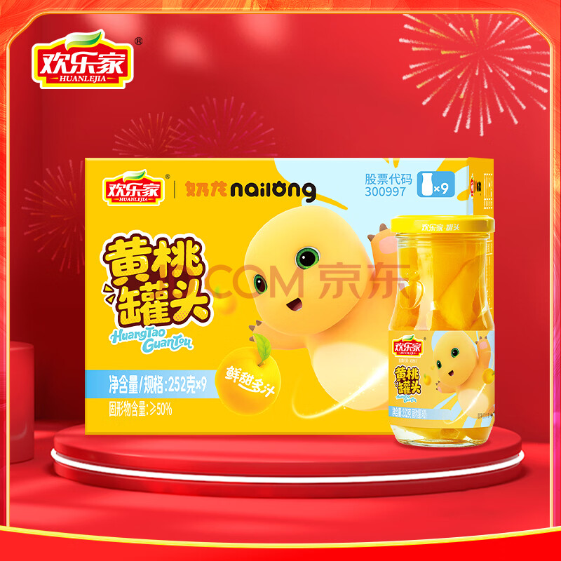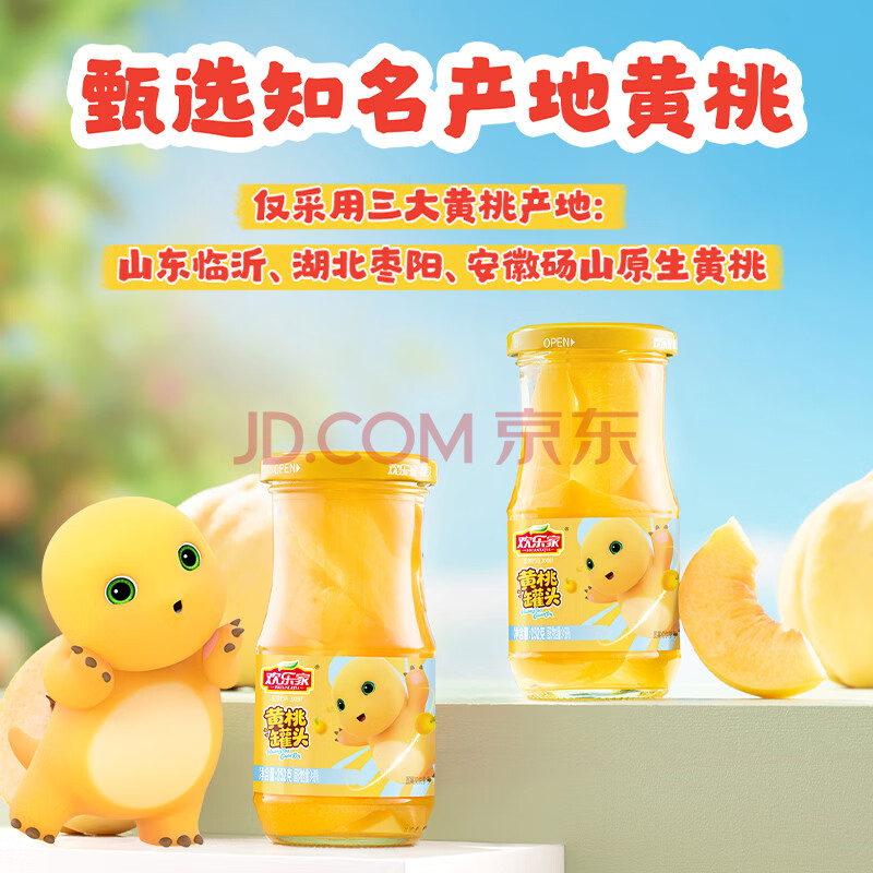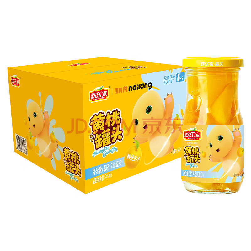 商品相册:欢乐家糖水黄桃罐头252g*9瓶 新鲜水果罐头 送礼礼盒 休闲零食第