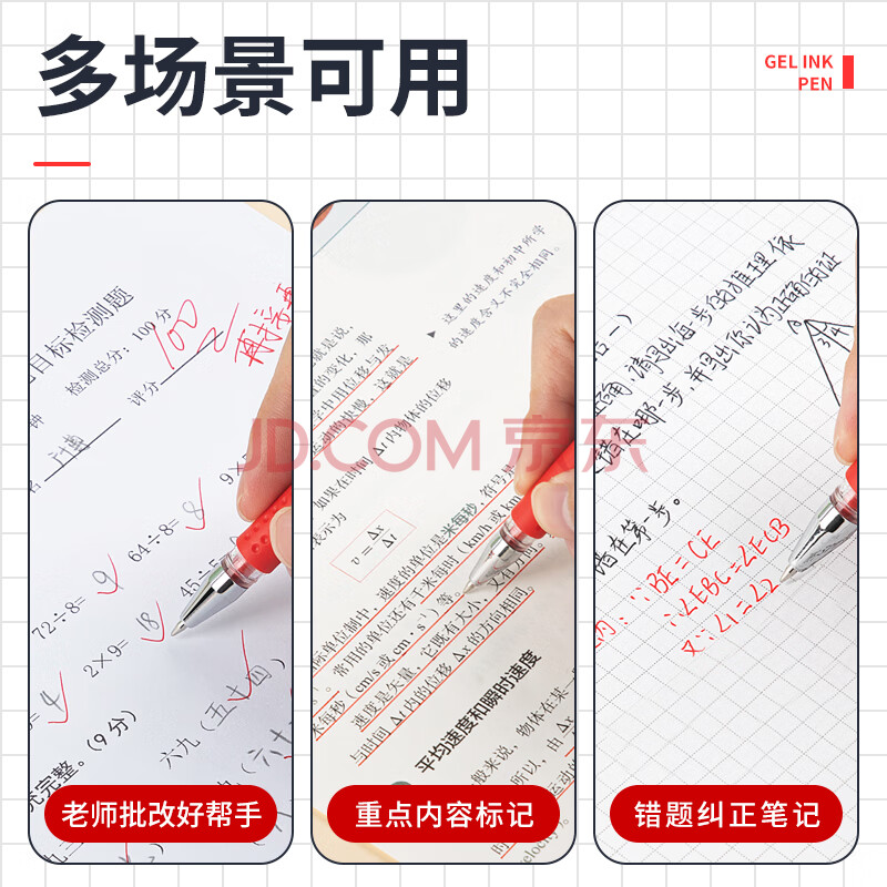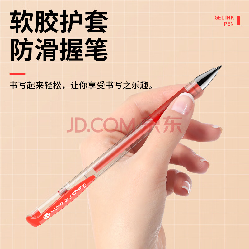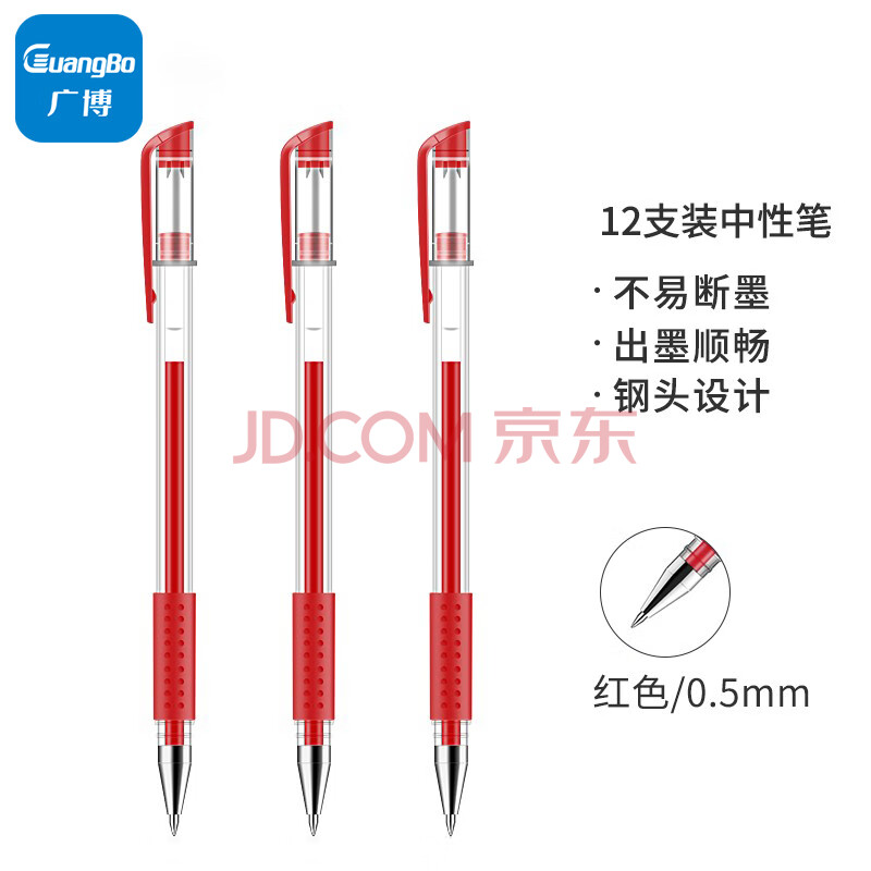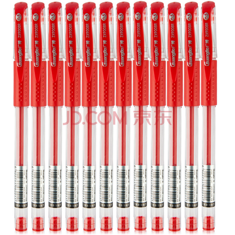 商品相册:广博(GuangBo)中性笔签字笔 0.5mm子弹头红笔水笔 经典办公用品学生拔盖水笔老师批改 红色 12支/盒 ZX9008R第