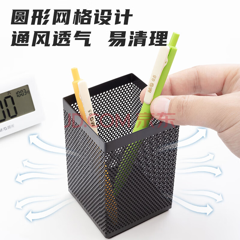商品相册:晨光(M&G)文具金属时尚网格方形笔筒 学生办公用品 桌面收纳盒 黑色单个装ABT98401第