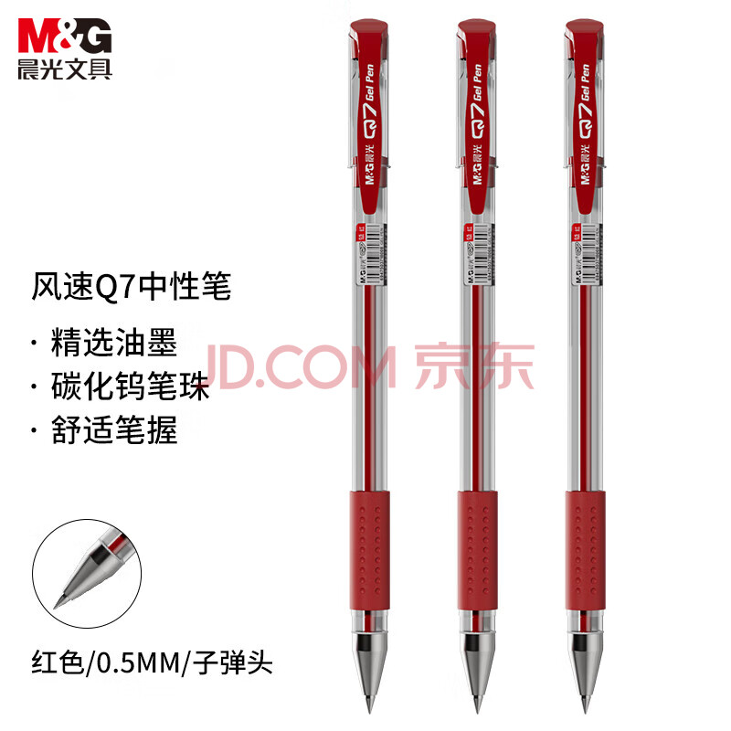 商品相册:晨光(M&G)文具Q7 拔帽中性笔学生0.5红笔签字笔商务子弹头考试水笔办公用品 红色 12支/盒第