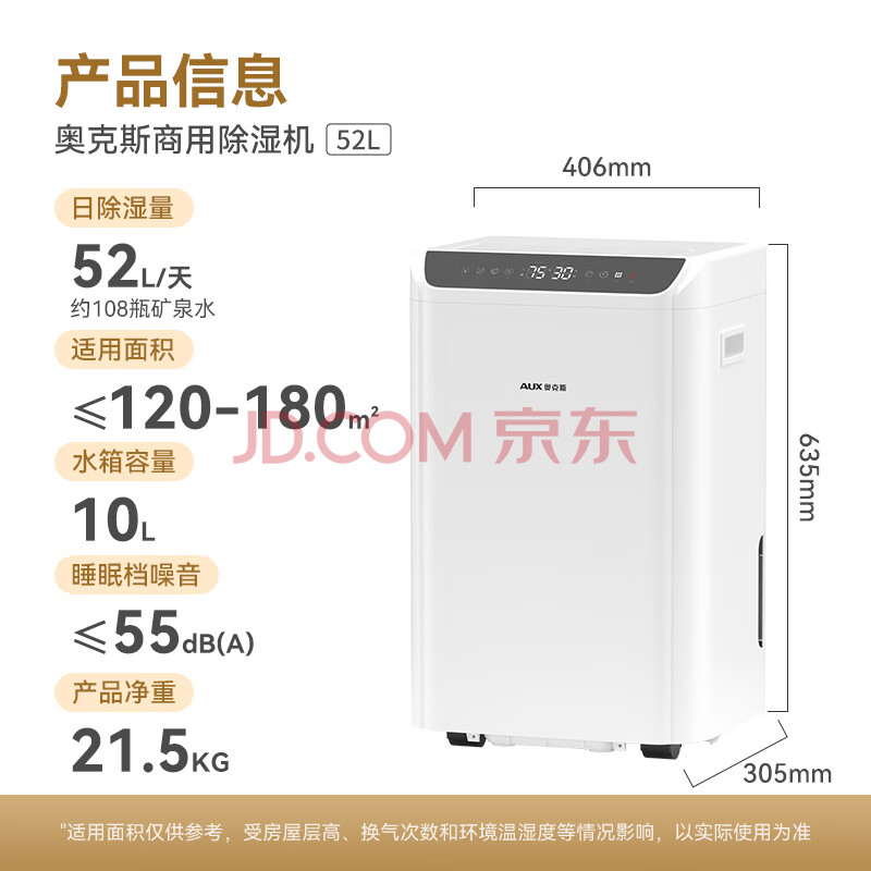 商品相册:奥克斯(AUX)除湿机/抽湿机 除湿量52L/天地下室车库复式别墅 工商用除湿器KDY-DP52A第