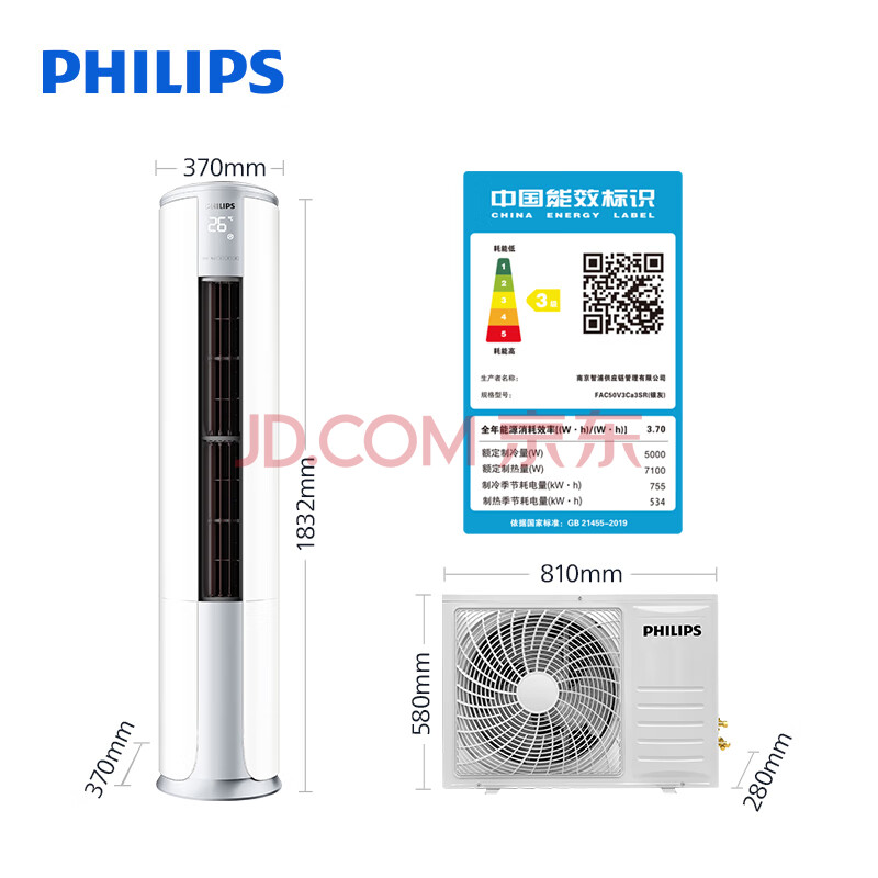 商品相册:飞利浦(Philips) 空调2匹柜机 新3级能效冷暖变频WiFi客厅房间圆柱立式FAC50V3Ca3SR银灰(企业采购)[3米全包]第
