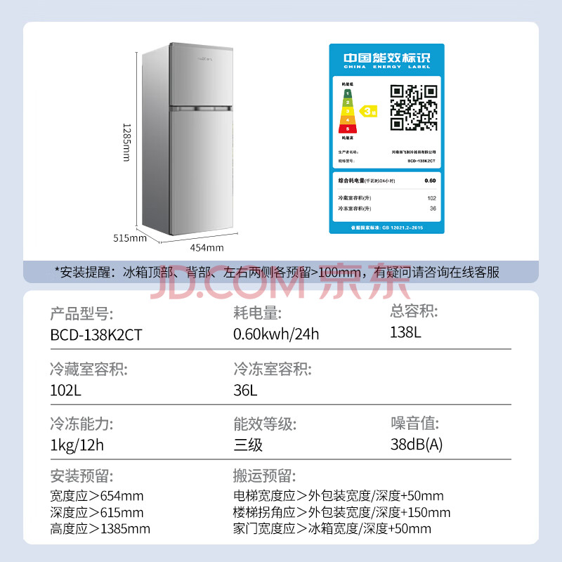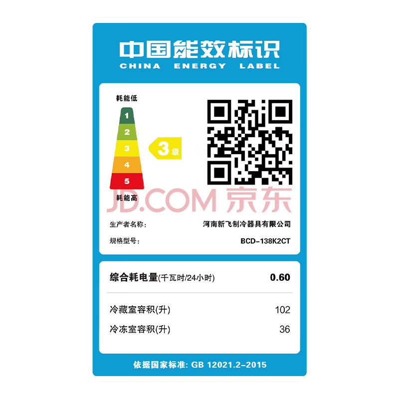 商品相册:新飞 (Frestec)138L两门小巧机身不占地省电节能冰箱BCD-138K2CT第