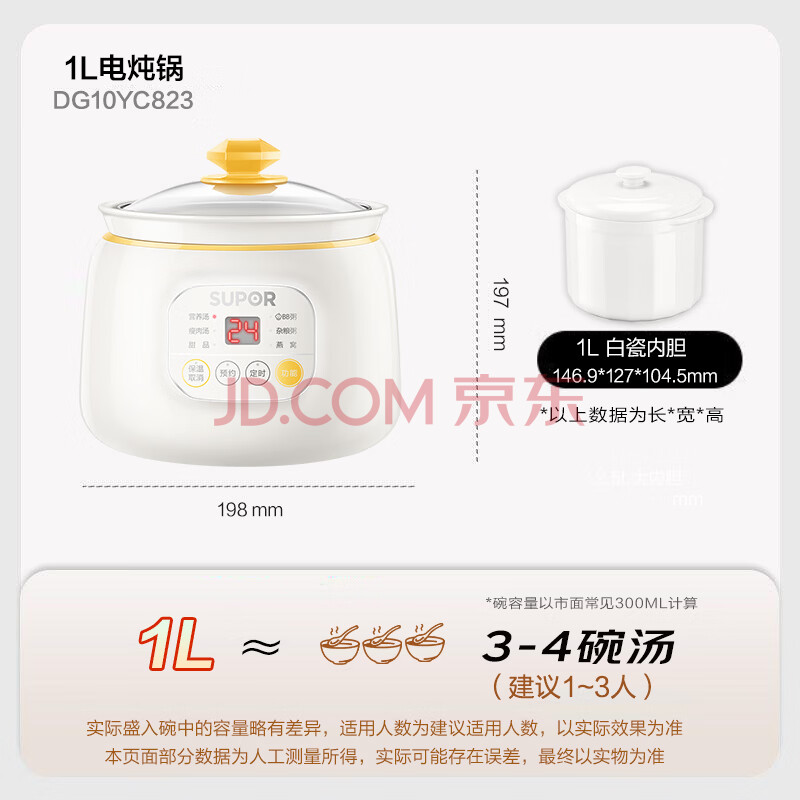 商品相册:苏泊尔(SUPOR)电炖锅 电炖盅 煲汤锅炖汤锅 燕窝炖盅 熬粥煮粥神器 婴儿辅食锅 电煮锅 电汤锅DG10YC823多功能锅第1张/共9
