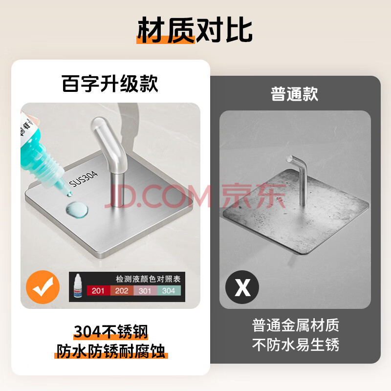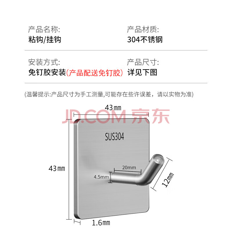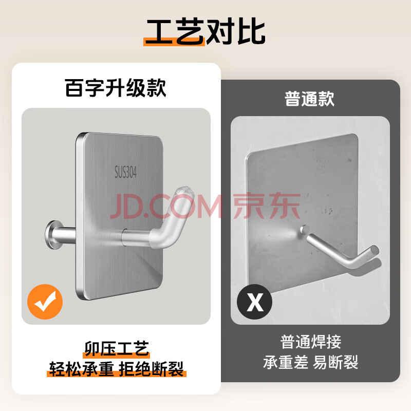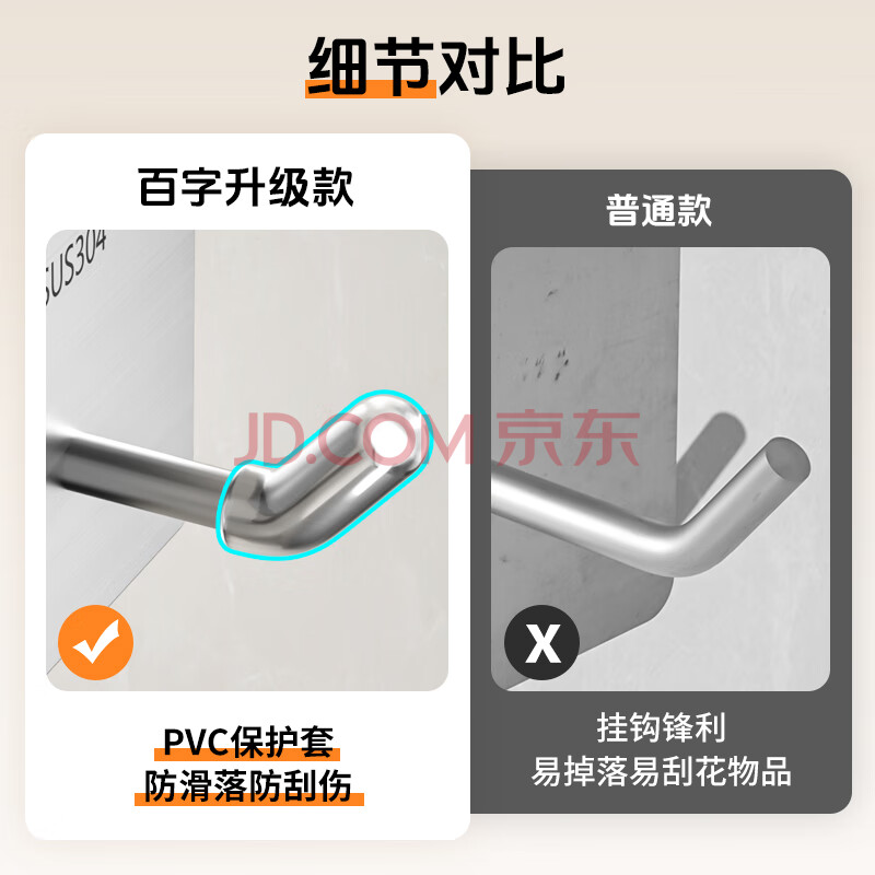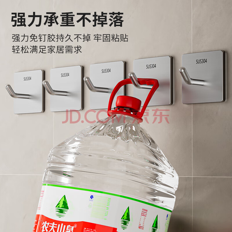 商品相册:百字挂钩304不锈钢浴室粘钩厨房免打孔排钩玄关入户门衣帽钩5只装第