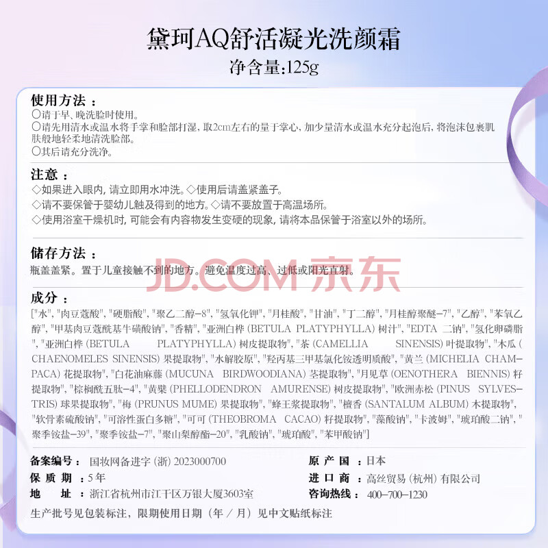 商品相册:黛珂AQ舒活凝光洗颜霜125g 洁面绵密泡沫洗面奶洁面乳 生日礼物送女友第