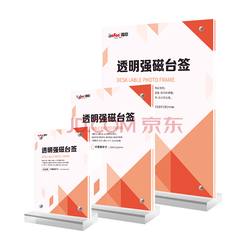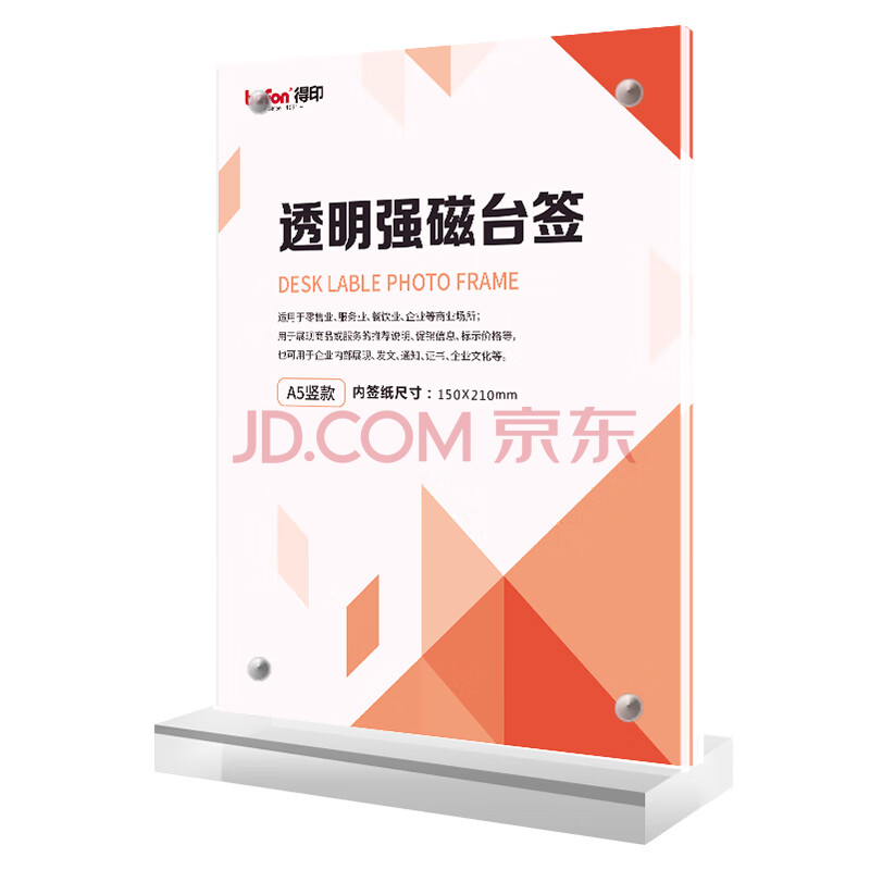 商品相册:得印T型亚克力桌牌 台卡台签工位牌座牌 强磁双面 150mm*210mm 高清透明会议展示牌 A5竖款立牌8870第