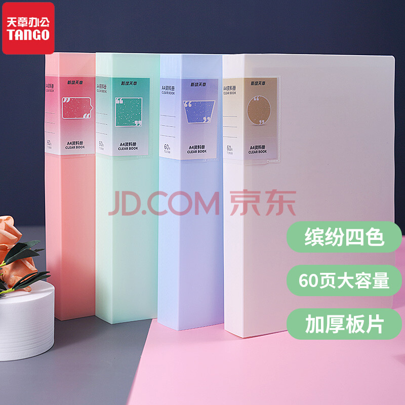 商品相册:天章 (TANGO)A4/60页资料册/插袋文件册/活页文件夹/文件收纳袋/学习资料收纳袋/办公用品 莫兰迪色4只 T19588第