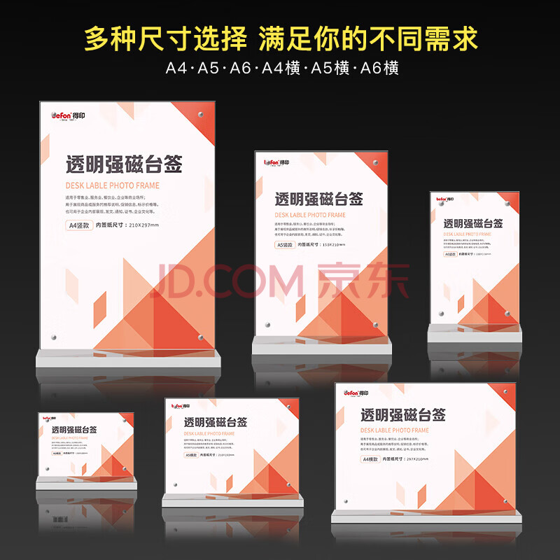 商品相册:得印T型亚克力桌牌 台卡台签展示牌高清透明强磁双面 100mm*150mm 工牌会议A6横款立牌8894第