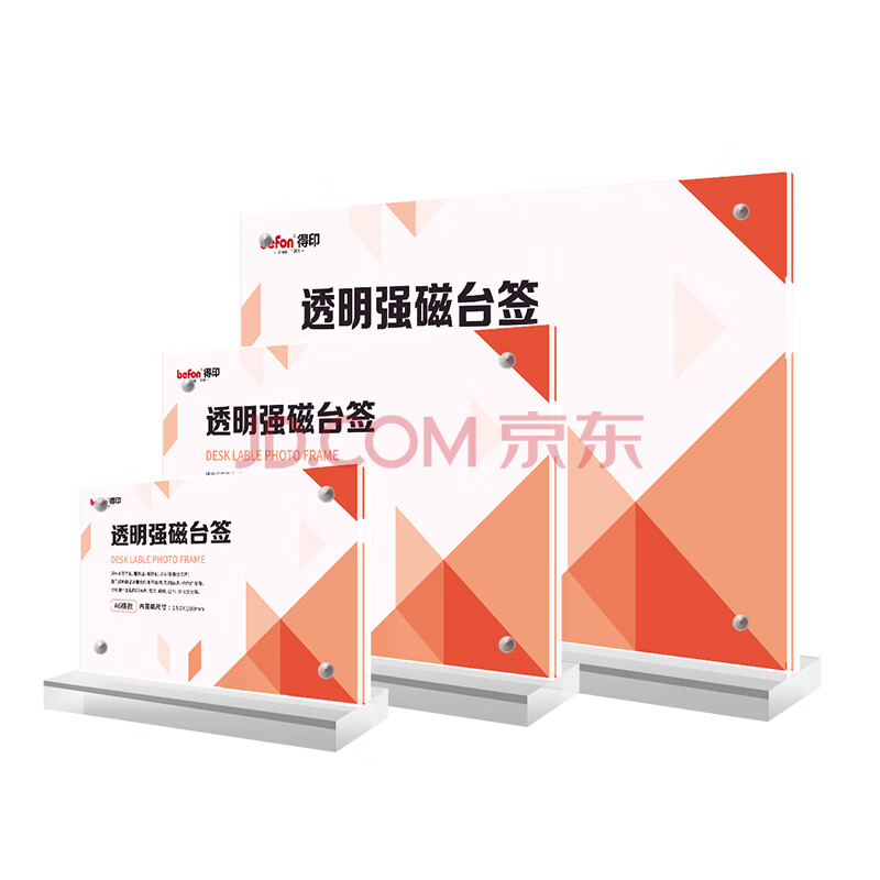 商品相册:得印T型亚克力台卡 台签桌牌座牌 高清透明强磁双面 210mm*150mm 会议展示牌工位牌 A5横款立牌8900第
