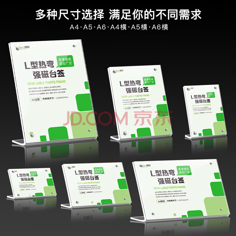 商品相册:得印(befon)L型亚克力桌牌台签 高清透明台卡座牌 强磁双面 297mm*210mm 工位牌会议展示牌 A4横款立牌8856第