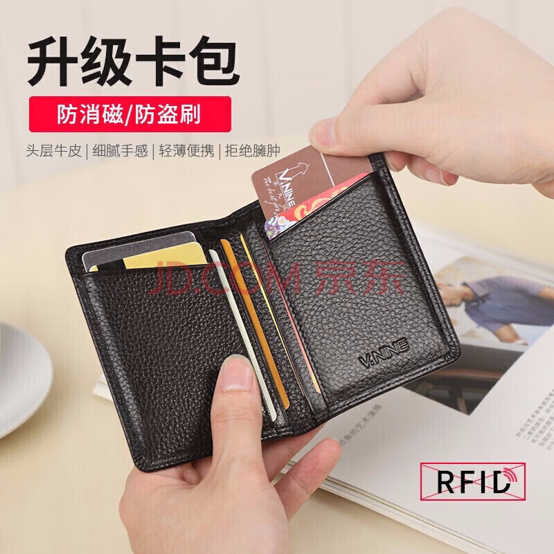 商品相册:第九城(V.NINE)卡包名片夹头层牛皮轻薄驾驶证皮套防盗刷NFC防消磁银行卡套迷你小钱包男送老公送男友生日礼物情人节新年礼物 黑色第