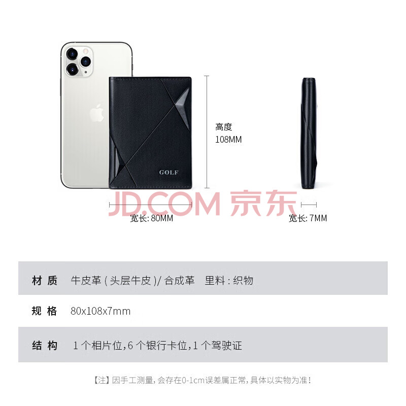 商品相册:高尔夫(GOLF)头层牛皮卡包男士多卡位卡套银行卡包男轻薄皮套卡片包竖款小钱包第