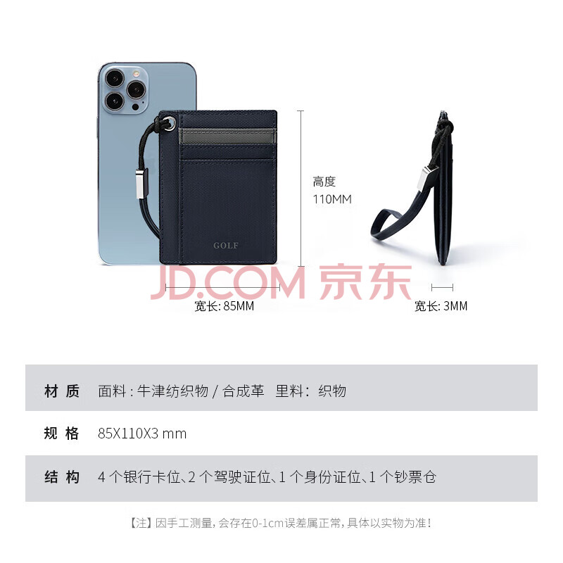 商品相册:高尔夫GOLF男士卡包男银行卡片包女多卡位卡套青年驾驶证套轻薄卡包大容量卡夹5V716324J蓝配灰第