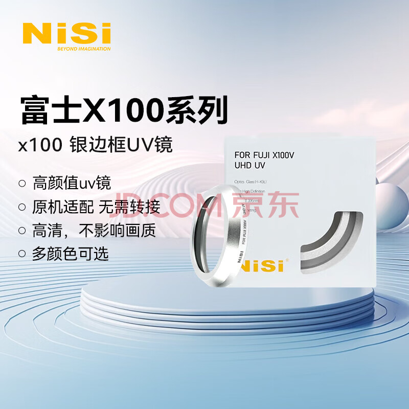 商品相册:耐司(NiSi)富士x100vi uv镜 银色款 FTSV系列适用 uv保护镜 单反微单数码相机保护镜 无需转接环直接安装第