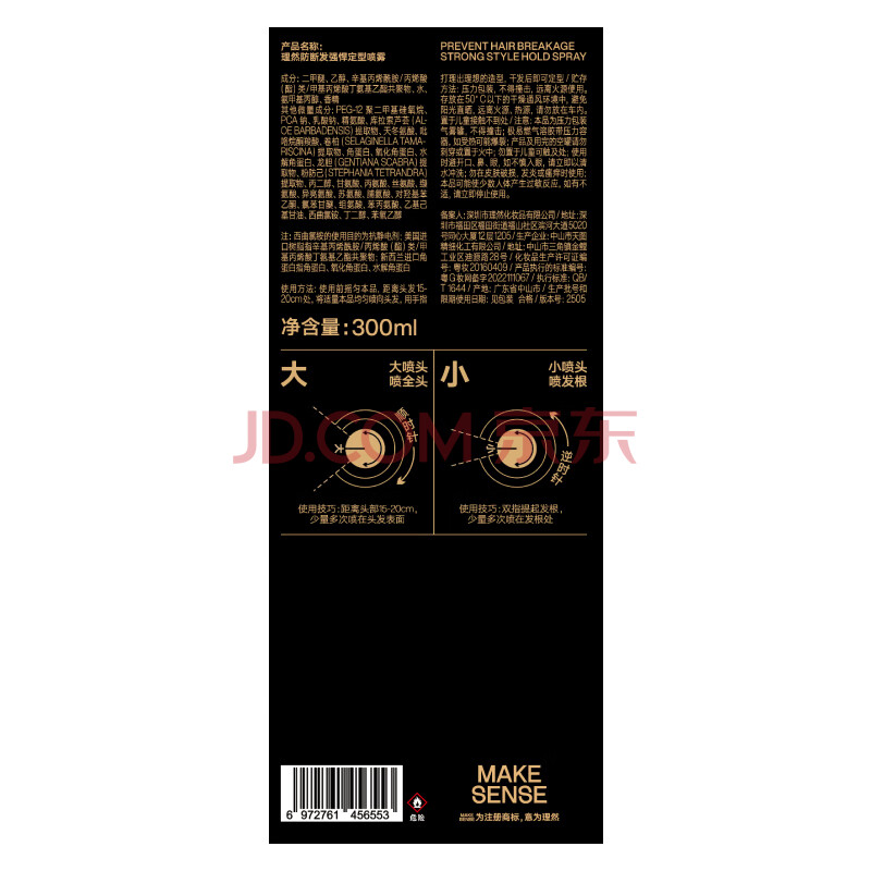 商品相册:理然男士发胶定型喷雾防断速干强悍定型持久立挺黑金造型喷雾300ml第