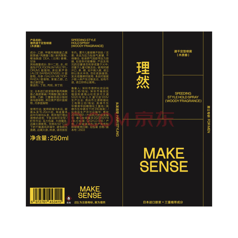 商品相册:理然发胶定型喷雾发泥男士头发造型喷雾蓬松哑光自然持久干胶250ml*2第