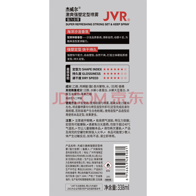 商品相册:杰威尔强塑持久定型喷雾男士发胶 头发造型干发胶自然速干无屑蓬松造型第