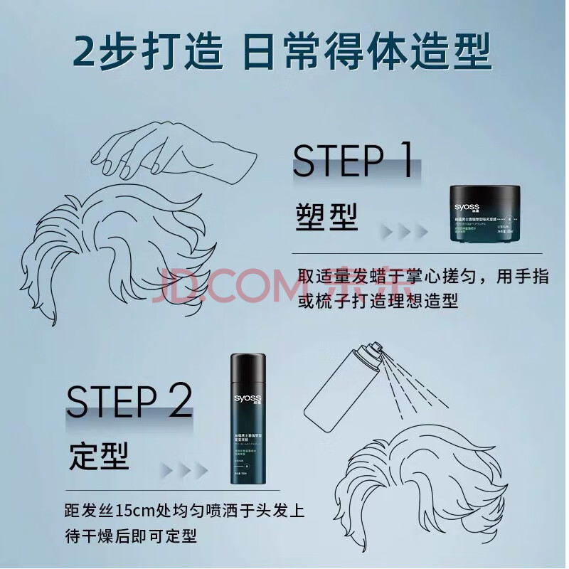 商品相册:丝蕴(syoss)激强塑型哑光发蜡发泥85ml+发胶喷雾180ml强力定型套装第