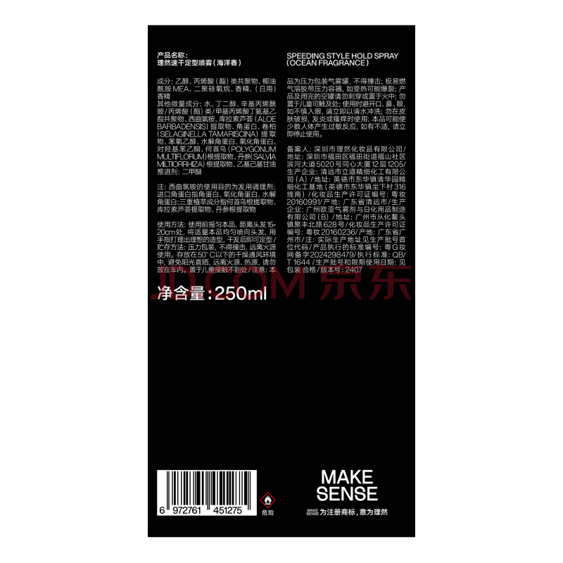 商品相册:理然发胶定型喷雾男士速干24H立挺持久强力固定自然哑光海洋香250ml第