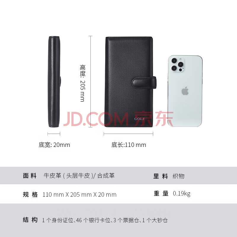 商品相册:高尔夫GOLF卡包男士头层牛皮多卡位大容量银行卡片包防盗刷长款钱包男证件包商务钱夹5V718394J黑色第