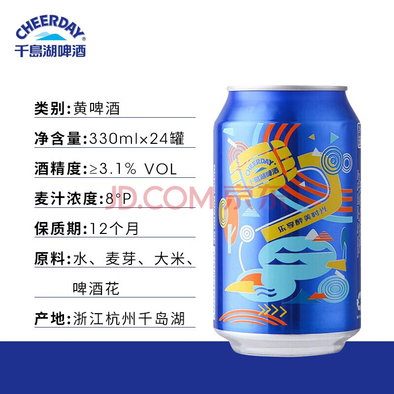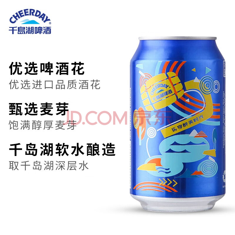 商品相册:千島湖啤酒(CHEERDAY)乐享时光8度330ml*24听 沁爽黄啤整箱装 年货送礼第