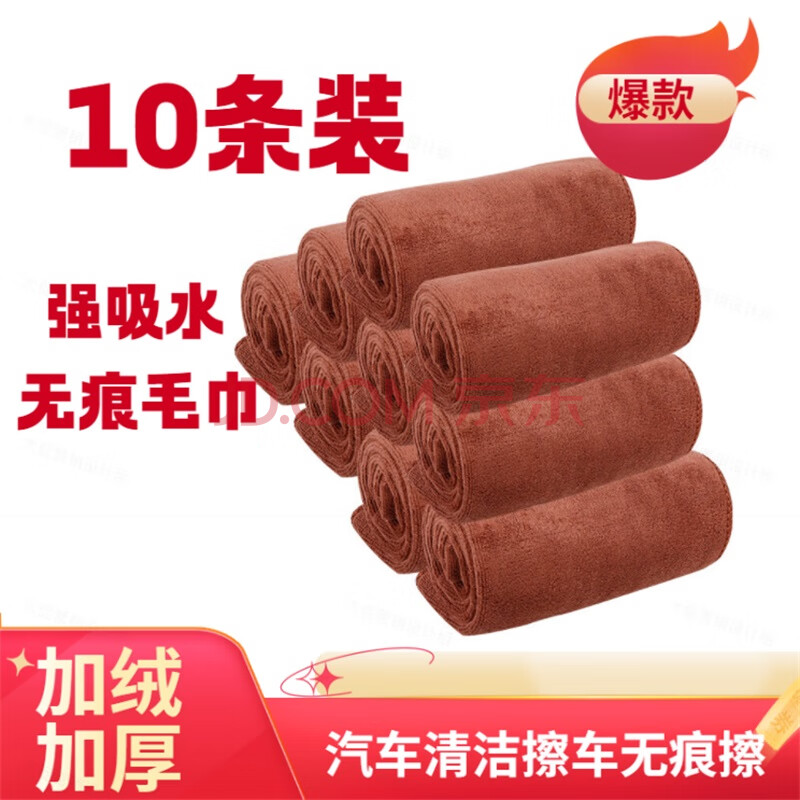 商品相册:硕基棕色40厘米*40厘米10条加厚洗车毛巾 吸水好清洗清洁用无痕毛巾第
