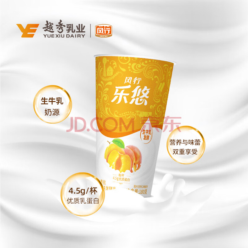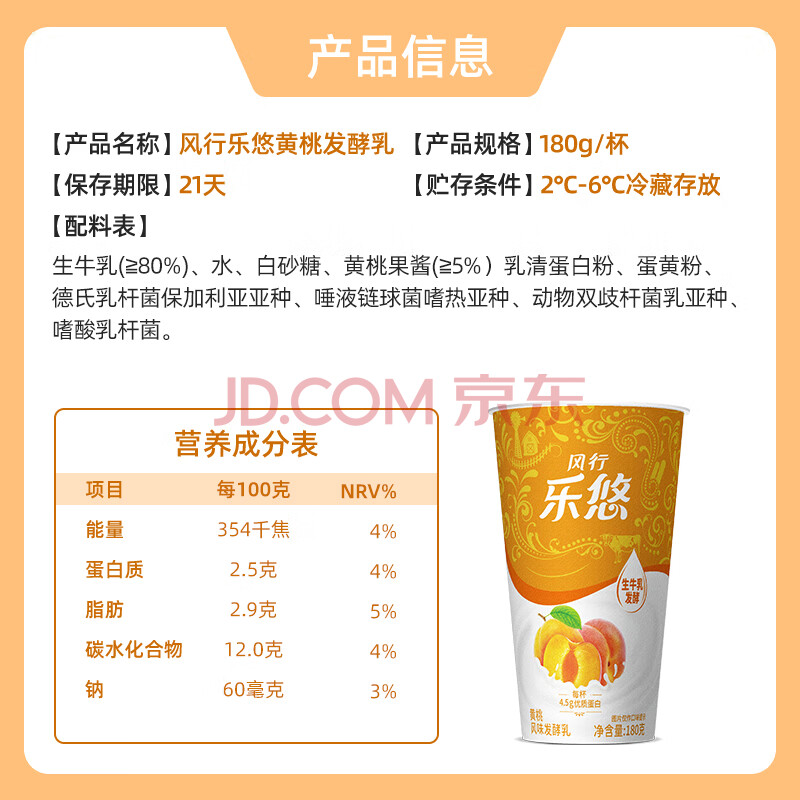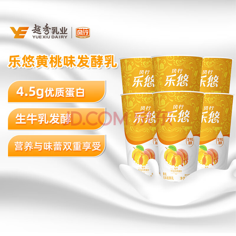 商品相册:风行牛奶 乐悠黄桃酸牛奶 180g*6杯 生鲜轻食低温酸奶风味发酵乳第