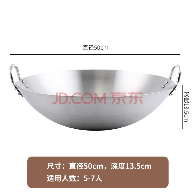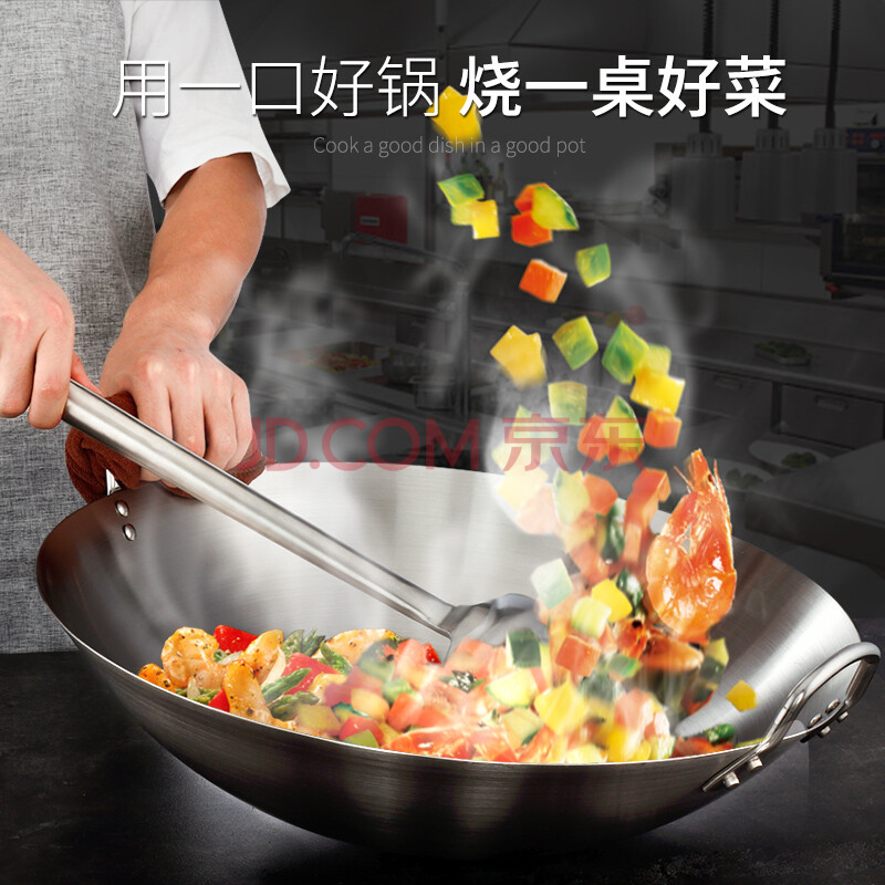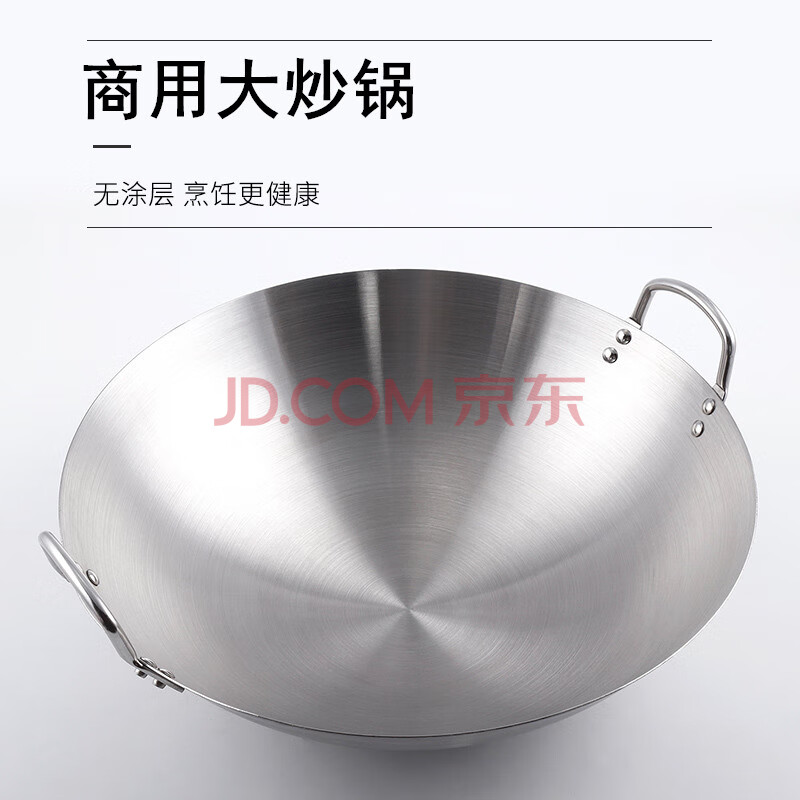 商品相册:全适加厚不锈钢炒锅50cm商用双耳炒锅饭店燃气灶煤气灶通用圆底炒菜锅第