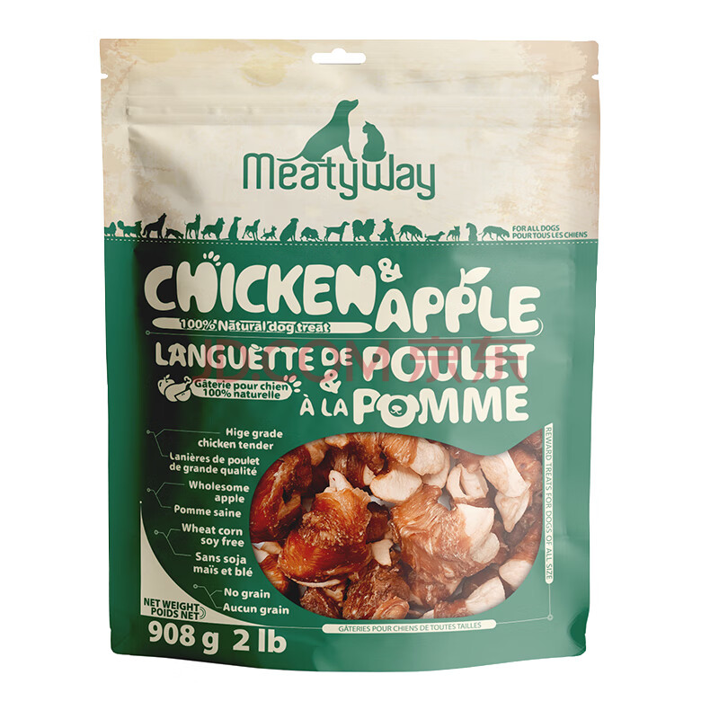 商品相册:Meatyway爵宴鸡肉苹果派908g 宠物狗狗零食鸡胸水果肉干训犬大礼包第