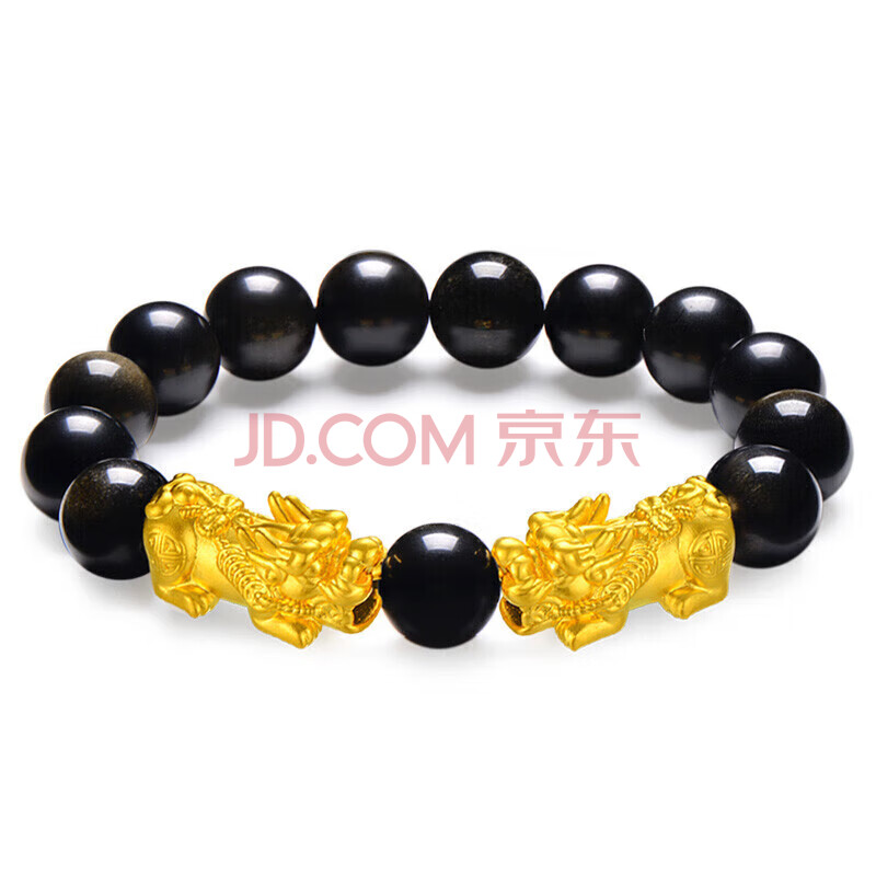 商品相册:蒂蔻(Tico)足金招财貔貅黄金转运珠手链男女黑曜石手串3D硬金手饰生日礼物第