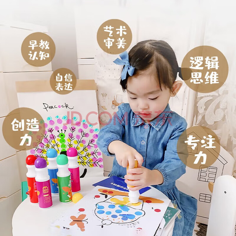 商品相册:美乐童年婴幼儿童点点画笔6色宝宝水彩笔涂鸦生日礼物玩具0-3第